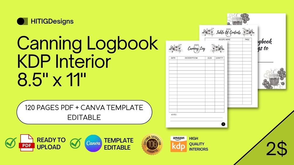 – PDF file ready to upload on KDP; 120 Pages – 8.5” x 11” and a Link To Editable Canva Template of The interior.